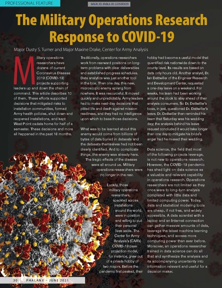 - The Military Operations Research Response to COVID-19, June 2021 https://www.jstor.org/stable/27029399