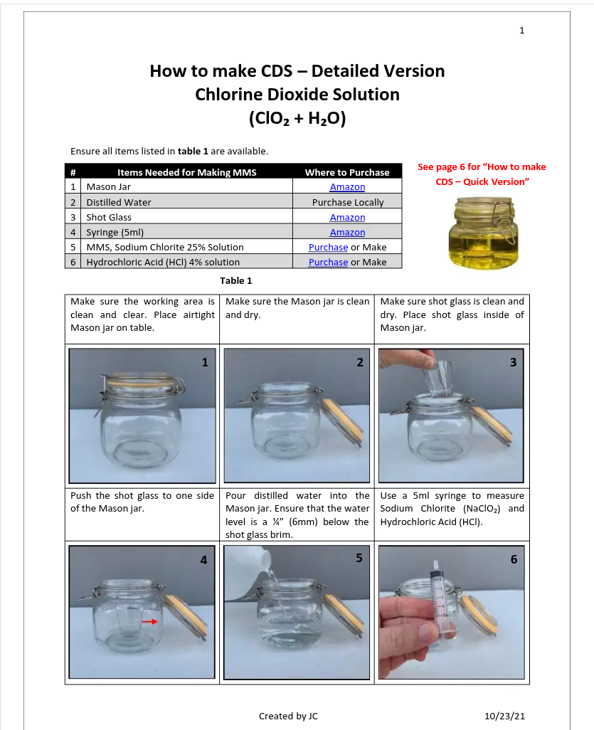 How to make CDS – A purer version of MMS / Chlorine Dioxide – The Universal Antidote