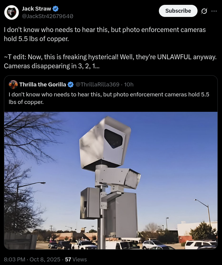 Stuff That Can’t Be Made Up – 5.5 lbs Of Resell-able Copper Inside Each Disappearing Illegal Photo Enforcement Camera