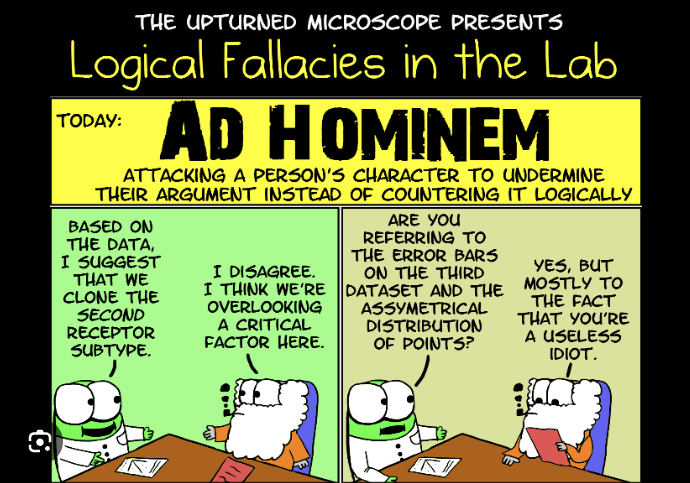 - Ad Hominem: Attacking the person instead of the argument.