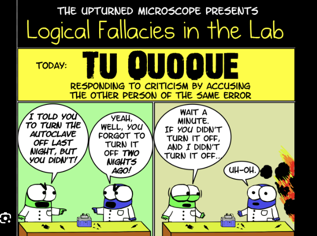 - Red Herring (Whataboutism): Introducing an irrelevant topic to distract from the original argument.